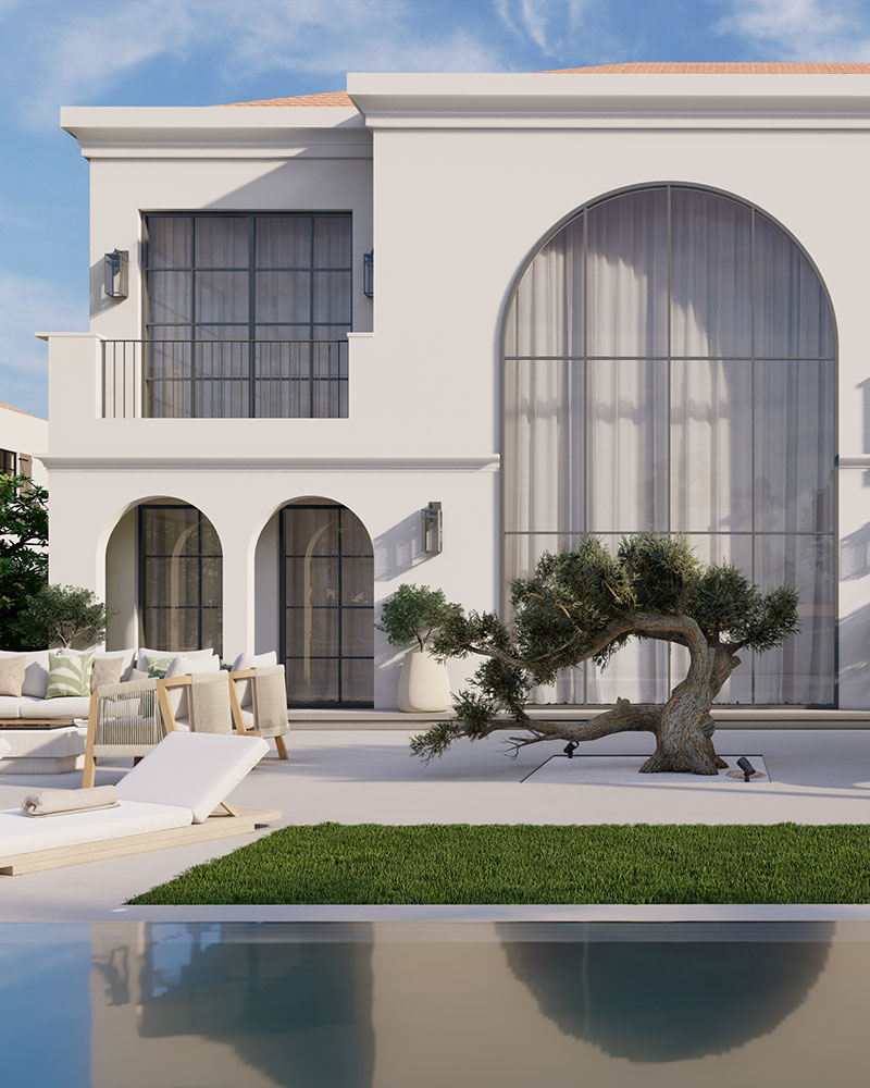 Our landscape design project at Jumeirah Golf Estate transformed the outdoor space into a luxurious oasis, seamlessly blending aesthetics with functionality. The front garden features a vibrant array of low-maintenance plants and flowers, creating a stunning entrance. A beautifully paved side walkway, lined with soft lighting, guides guests to the main entertainment areas.